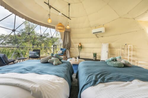 在大自然環繞的療癒空間中欣賞壯麗的富士山矗立天際,將是一生難忘的豪華露營體驗。