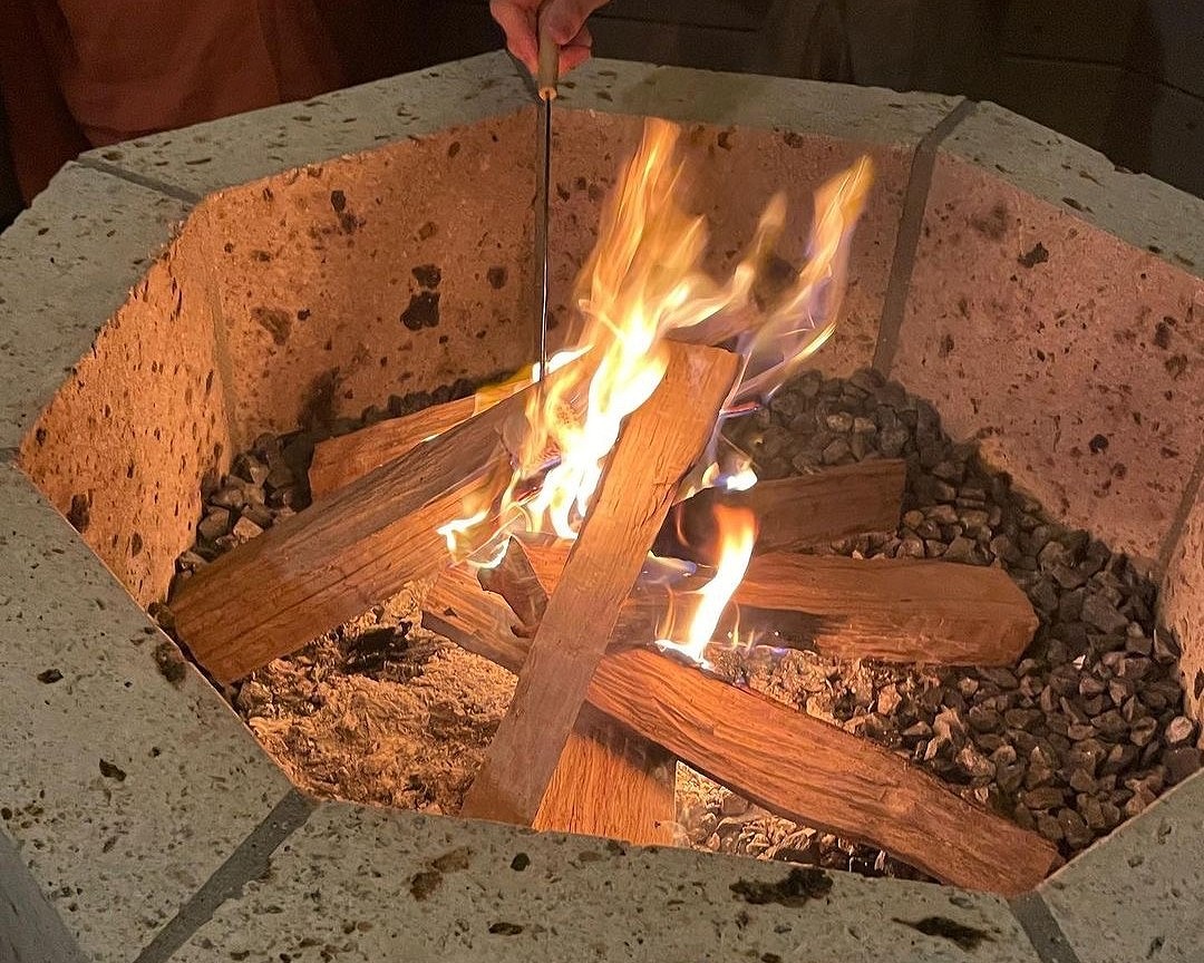是一處佔地超過500㎡,設有客房溫泉、私人泳池和露營營火等的豪華露營度假村。