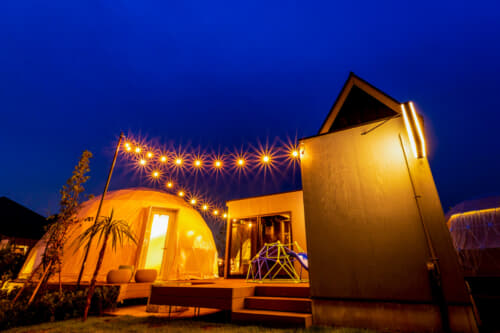 「GLAMP DOME 富士忍野」位於山梨縣忍野村,