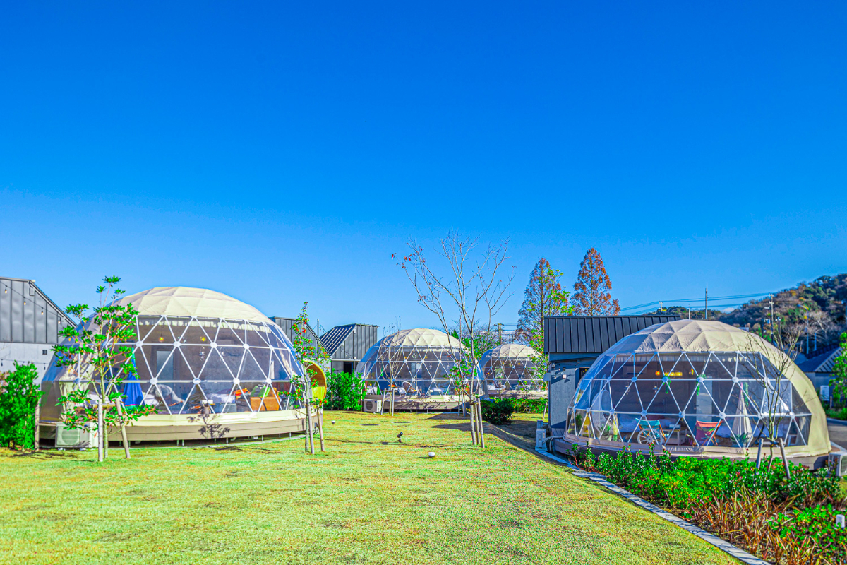 「GLAMP DOME 富士忍野」位於山梨縣忍野村,