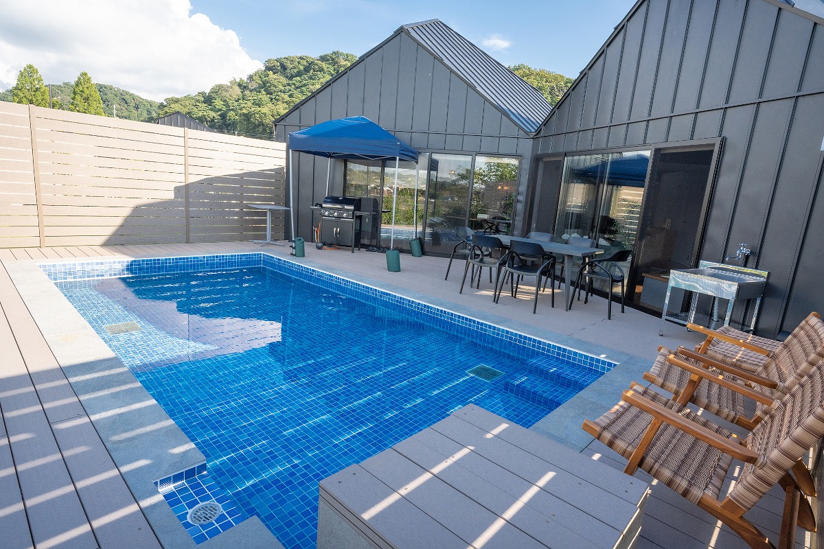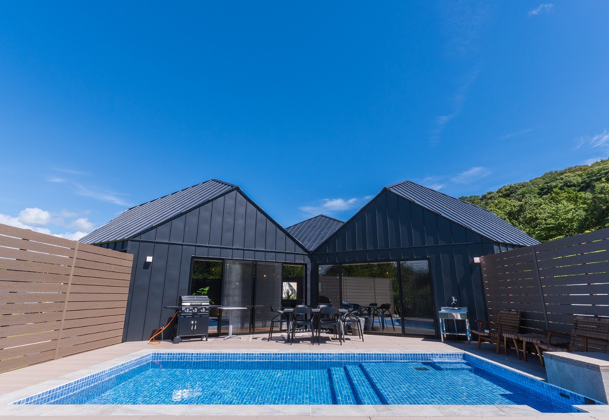 三棟度假別墅,均設有溫泉測評師推薦的「黑溫泉」和專屬的私人泳池,