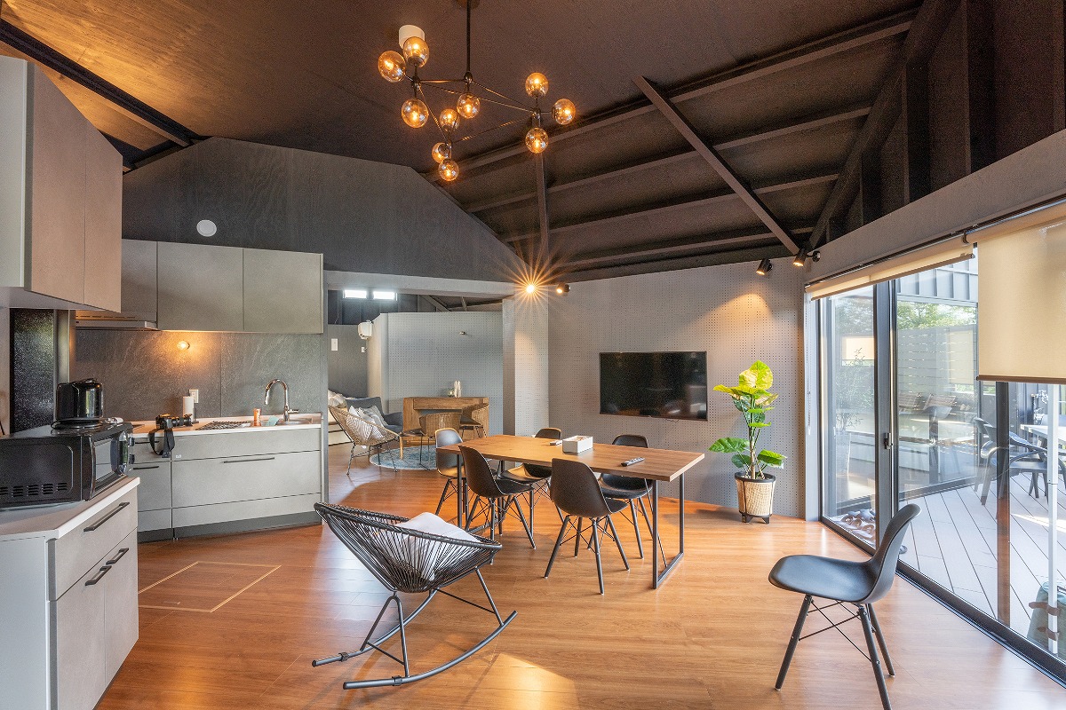 此豪華度假村為山梨縣內首發,八套獨立式客房皆備有天然溫泉和冷暖氣。